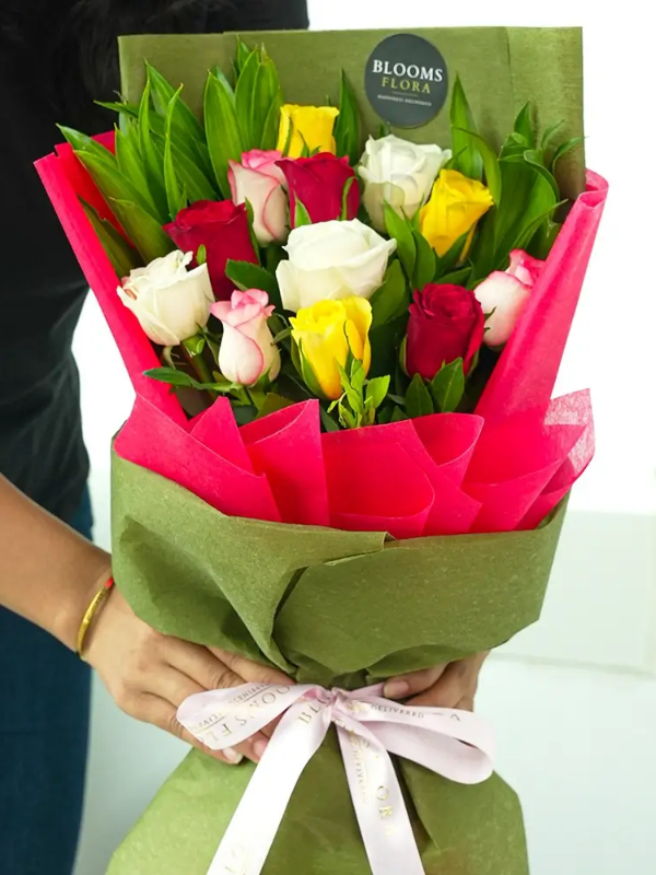 12 adet renkli güllerden oluşan bu zarif buket sevdiklerinizi çok mutlu edecek.