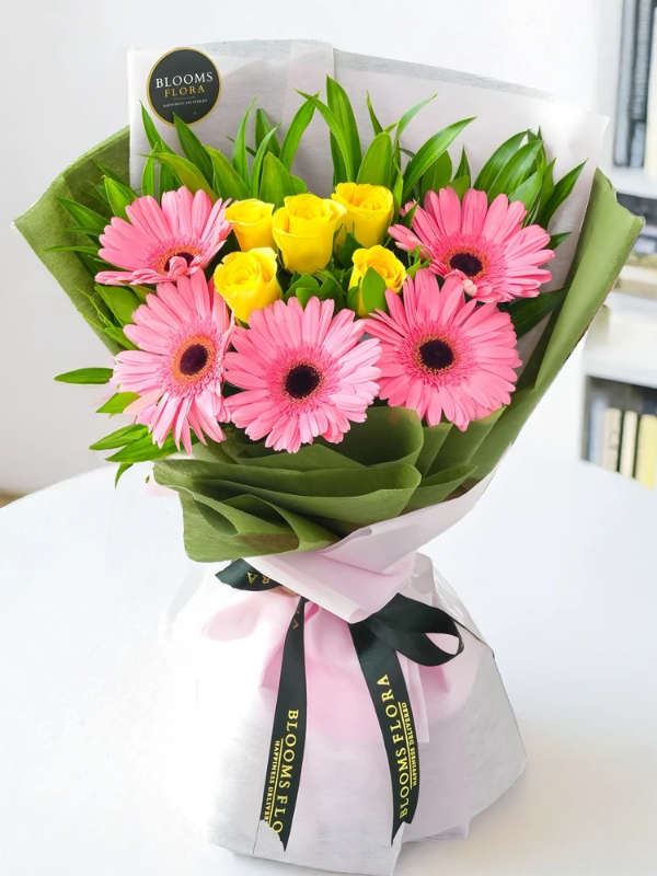 Pembe Jerbera ve Sarı Gül Buketi